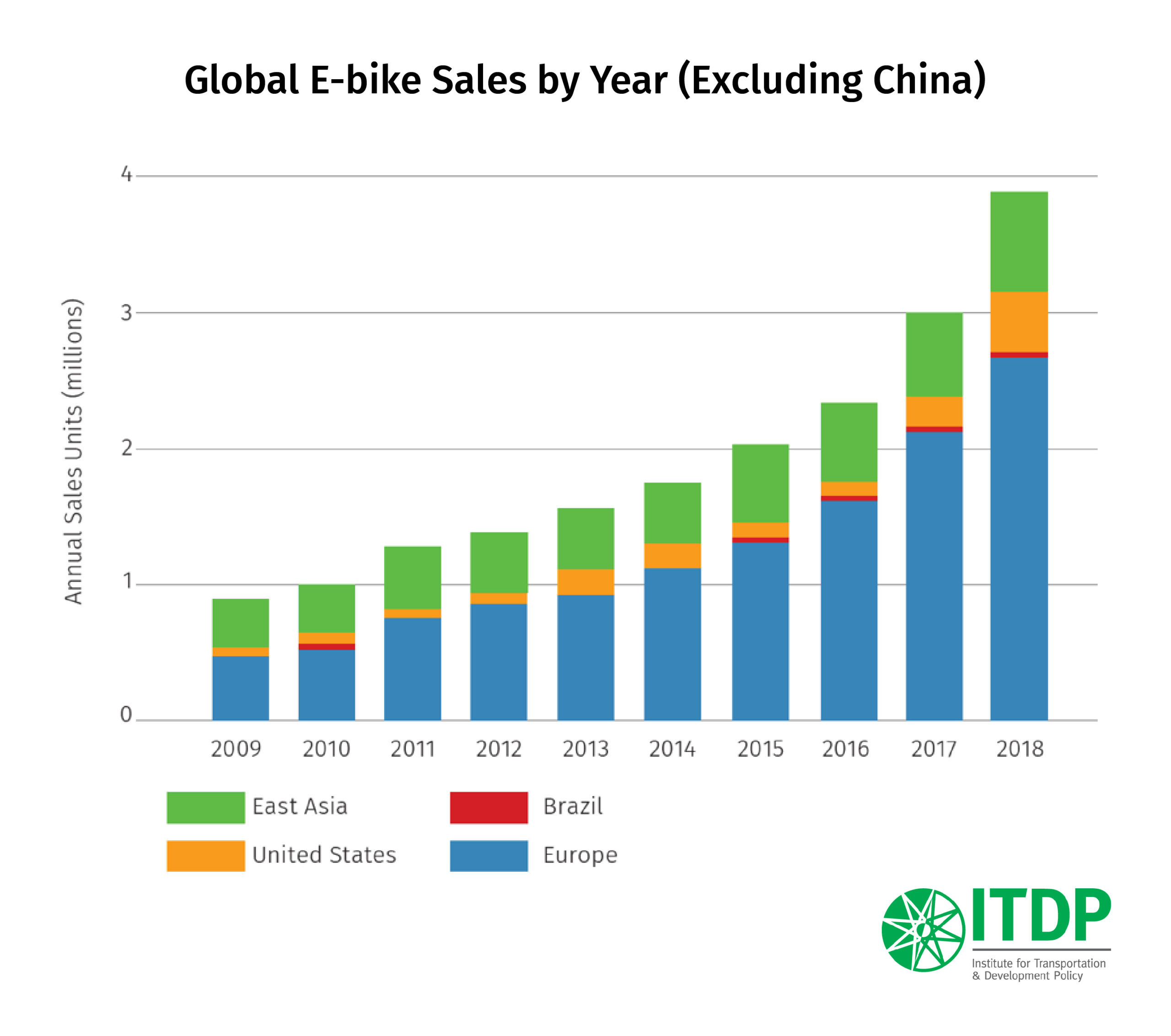 An e-bike is a two or three-wheeled device equipped with pedals and a battery-powered motor that provides an assist to the rider. These are also referred to as pedal-assist bicycles or pedelecs. Read more here about e-bikes in ITDP’s recent report.