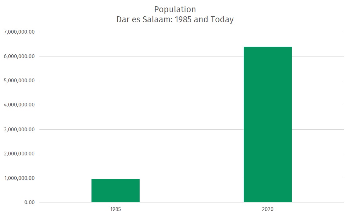 35 years ago, Dar es Salaam was experiencing a surge of informal public transit operators. The transport authority acknowledged it was unable to meet demand with its limited bus system, and legalized the now ubiquitous daladala minibuses. Today, this is still how most Dar es Salaam residents travel: packed into shared minibus taxis that jostle for space on the city’s car-dominated streets, or on the back of the Boda boda motorbike taxis that weave through traffic and navigate narrow side alleys. In the past 20 years the population has boomed, from less than one million to more than six million and today Dar es Salaam has moved to the forefront of African cities, it is now the third fastest growing city on the continent.