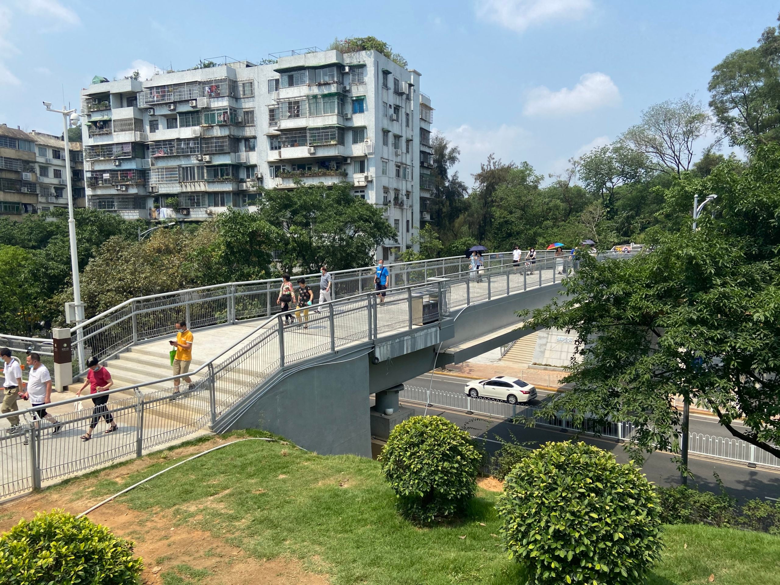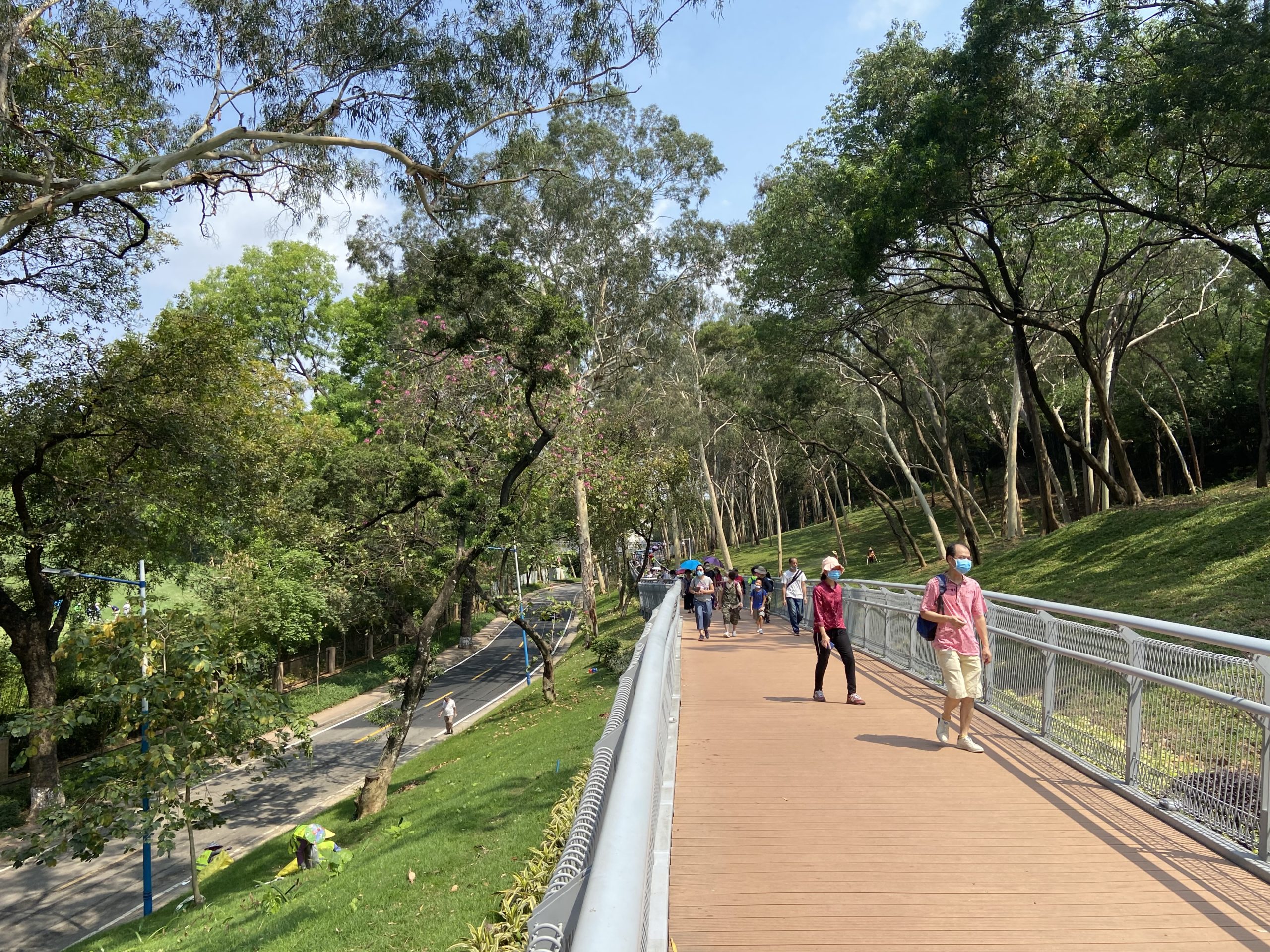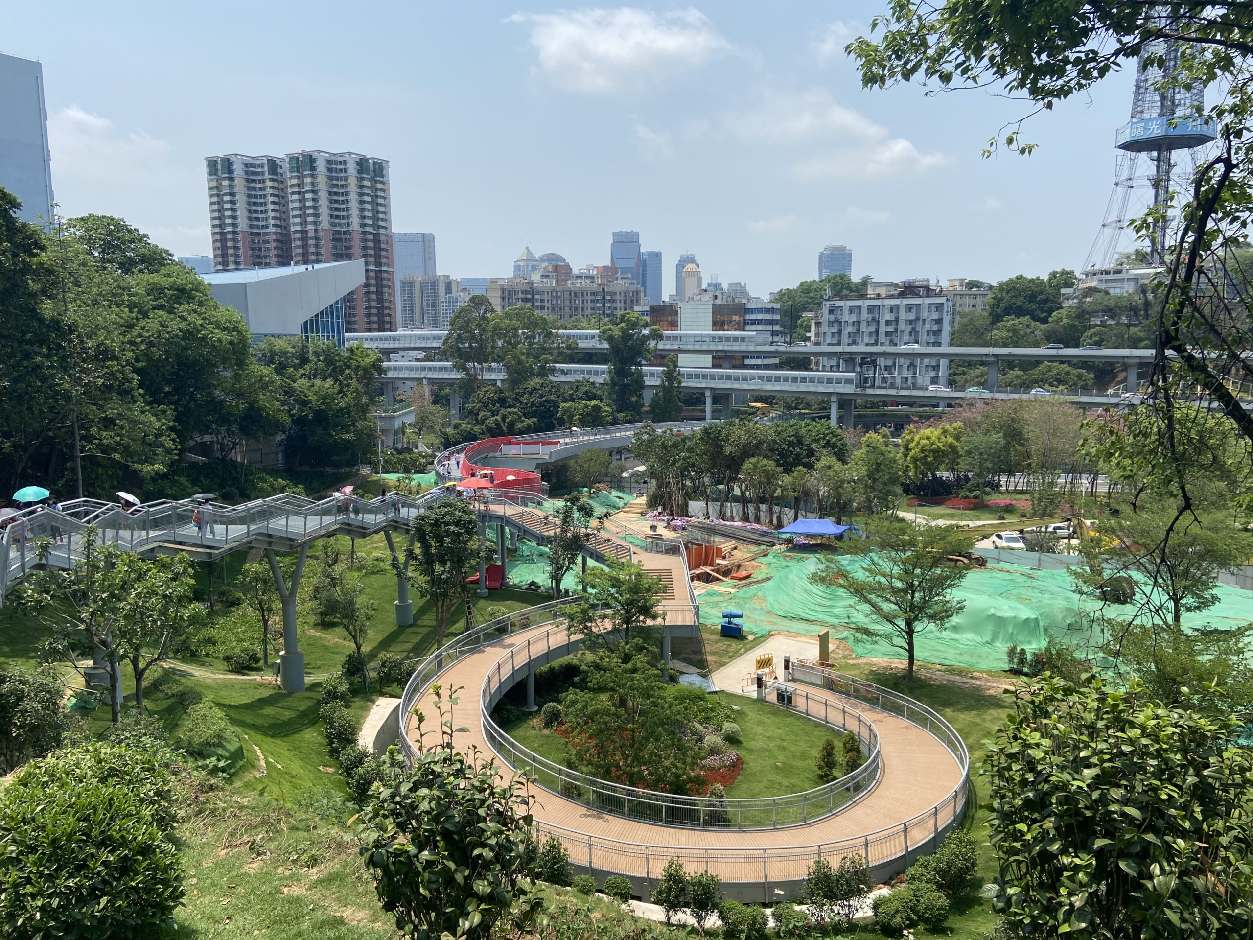 Life in Chinese cities is gradually returning to pre-COVID-19 conditions, with traffic jams during peak hours and transit ridership back to 70% of previous demand. With temperatures rising and a recent spell of good weather, residents of Guangzhou have started returning to the city’s parks and public spaces. During the 1 May Worker’s Day holiday, citizens of Guangzhou enjoyed the newly opened Cloud Pathway, an 8 kilometer pedestrian walkway that connects several popular parks and landmarks in the center of the city.