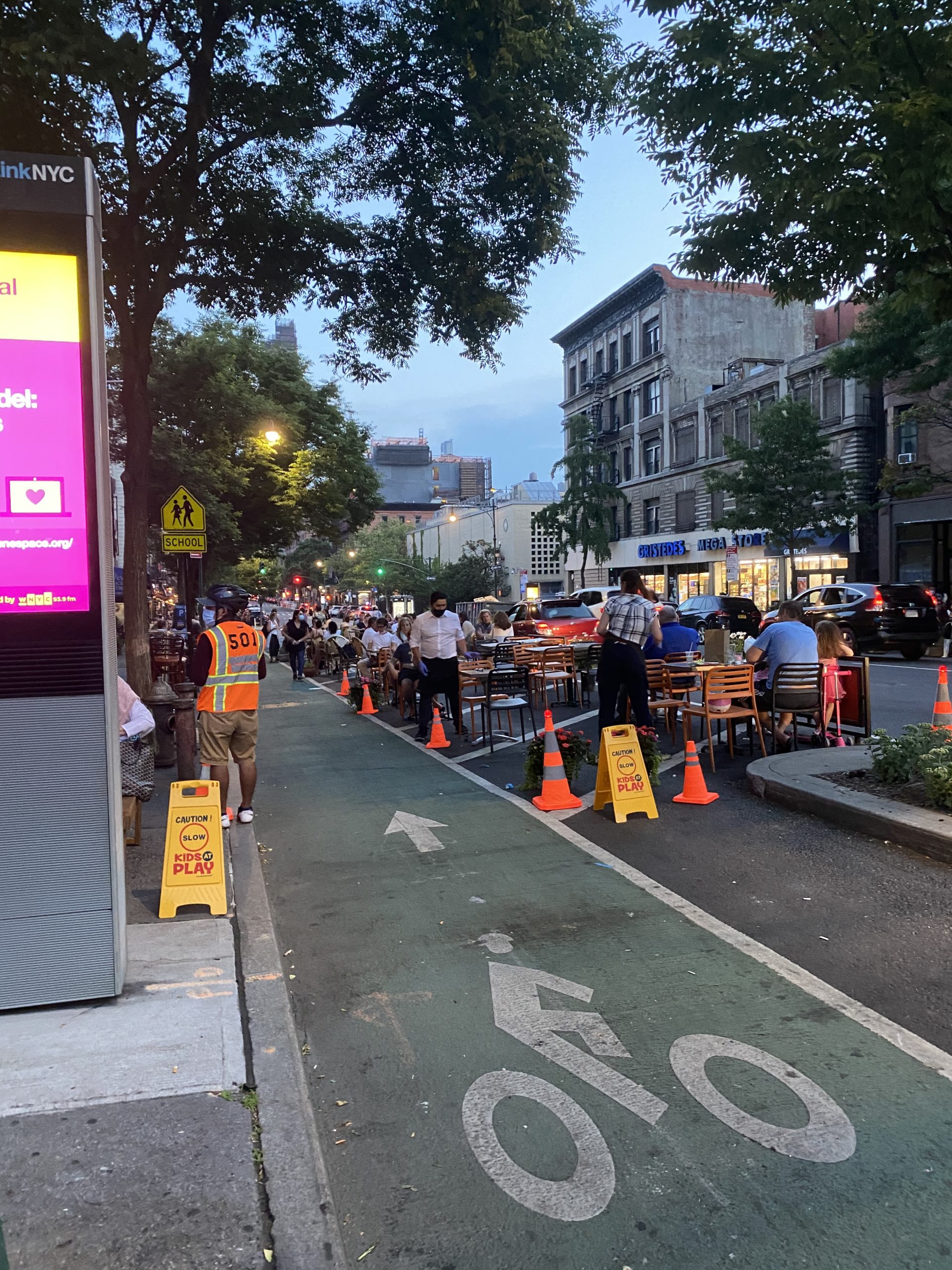 Much of the success of the removal of parking spots might have to do with the framing of the issue: restaurants need patrons to serve, patrons cannot safely be served inside, therefore the sidewalk and parking space in front of the restaurant are the only safe location for the restaurant to expand to survive. The response from patrons mimics that urgency: to survive the restaurants need this space. Residents can see how much more valuable, useful, and accessible the urban space is with the exclusion of free car storage. Even restaurant critics mention the value of having the space for the people of New York. Sustainable transportation advocates have pushed for the removal of free parking for many years, but this argument succeeded differently for two reasons. First, there was an urgency that was easy for people to grasp; second, due to the drastic changes that cities underwent as a result of the pandemic, people could see more clearly the benefits of open streets. People care about keeping their favorite businesses afloat, so the pressing need for change was easy to accept. Now that people see how many more ways their parking spaces can be used, they can begin to reimagine their cities. In some ways, Covid-19 has ushered in an era of extreme, and completely subtle, tactical urbanism.
