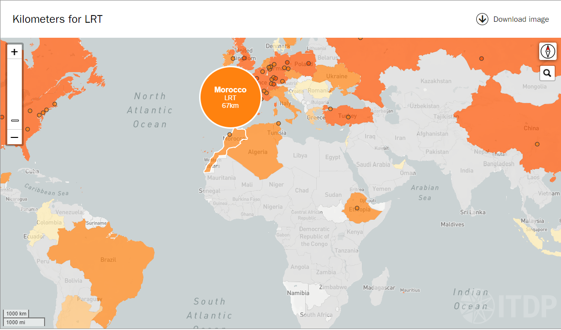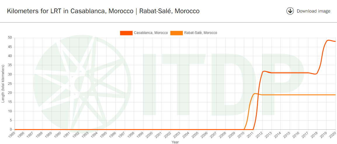 Of the four African nations with light rail systems, Algeria, Ethiopia, Morocco, and Tunisia, Casablanca’s expansion of its LRT to 48 kilometers now makes Morocco the African country with the most kilometers of LRT. Rapid transit corridors have been tied to economic development.