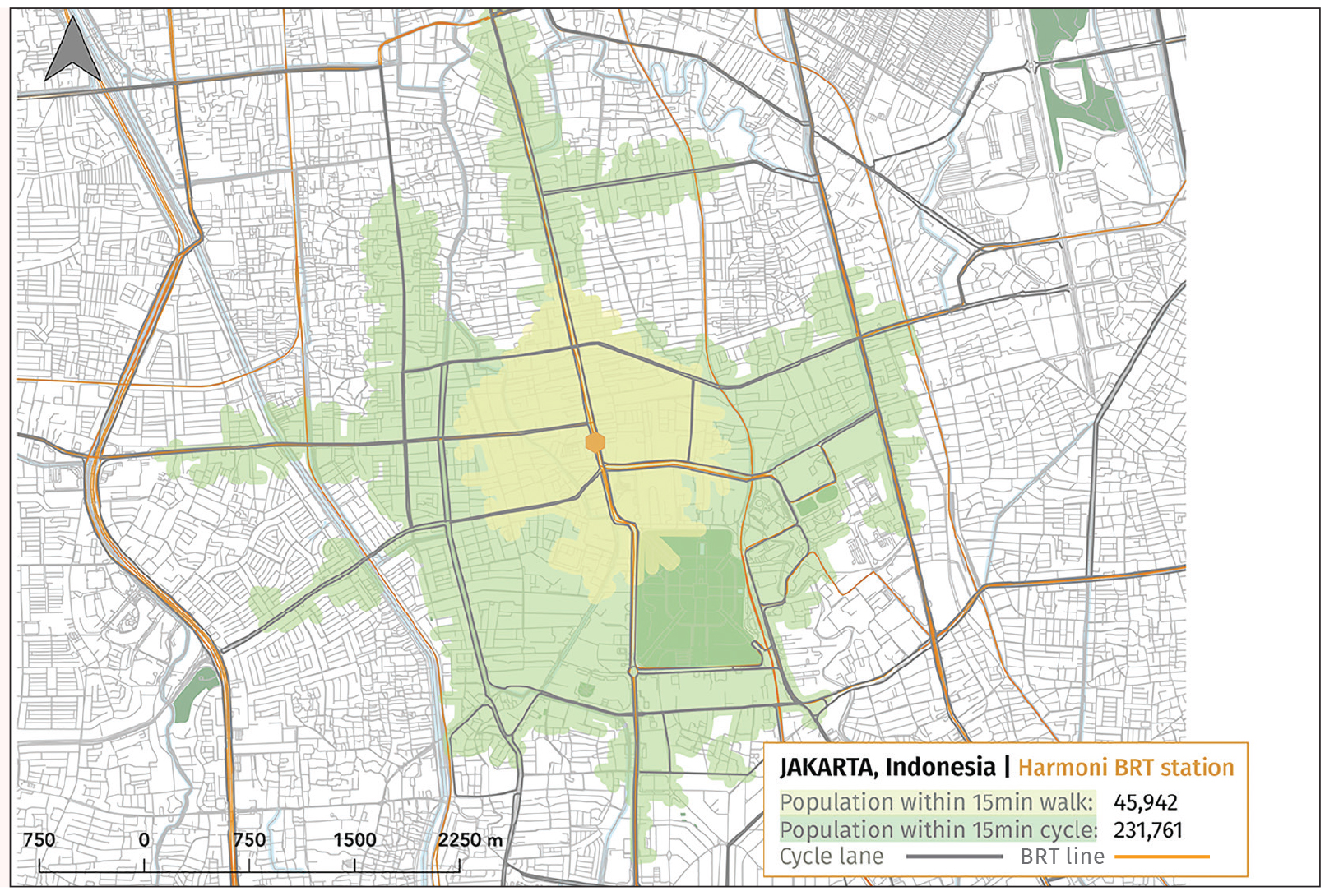 ITDP’s new report, Maximizing Micromobility: Unlocking Opportunities to Integrate Micromobility and Public Transportation explores how cities have approached multimodal integration in the past, and what lessons can be applied to integrating micromobility with public transport. Integration improves reliability, affordability, and flexibility of multimodal trips; increases ridership across modes; and expands the population within an accessible distance to transport stations. Physical integration, in particular, expands access. The maps below show a significantly higher percentage of the population is within a 15-minute cycle (or other micromobility) trip using cycle lanes compared to a 15-minute walk of a public transit station in Jakarta, Indonesia, Mexico City, Mexico, and Fortaleza, Brazil.