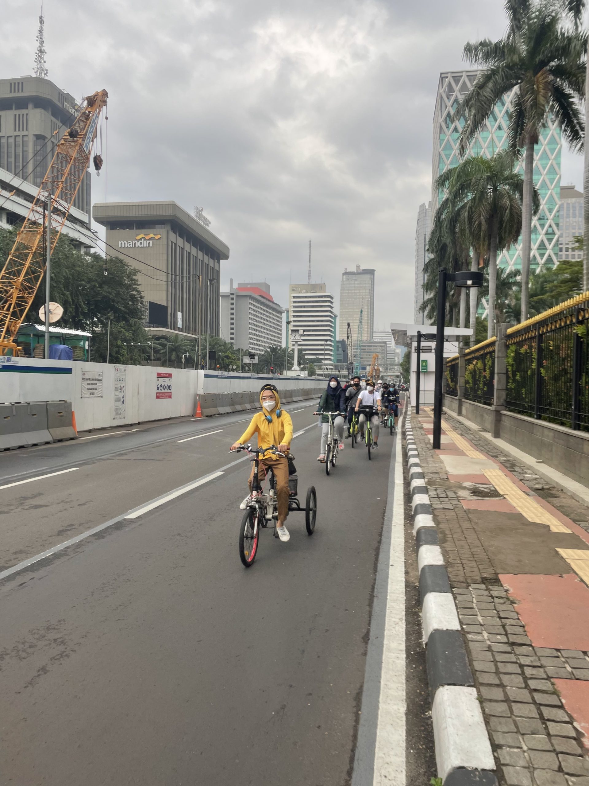 Although the buzz surrounding the demolition issue has died down, other issues continue to challenge its construction. During the current partial lockdown, the police banned cyclists from passing the protected cycle lane. The police claimed that recreational cyclists would cause crowding. However, based on ITDP Indonesia’s survey, the road is used by cyclists with many different needs, including the vulnerable groups. The cycle lane has reaffirmed the reality that safe and comfortable bicycle lanes are needed by people of all abilities and needs.