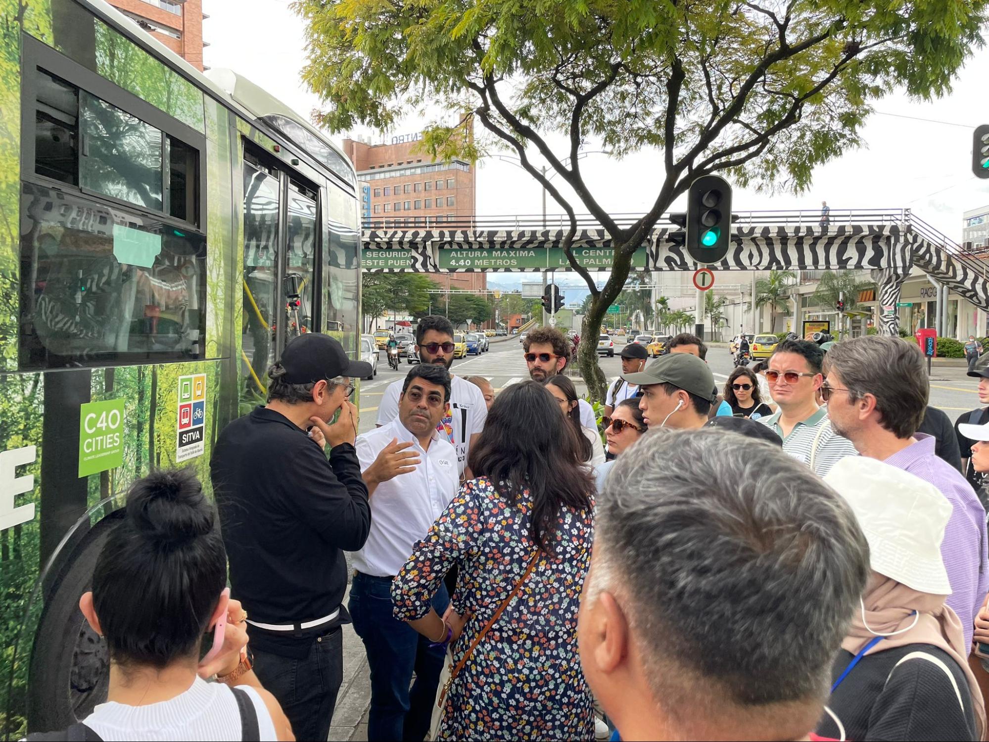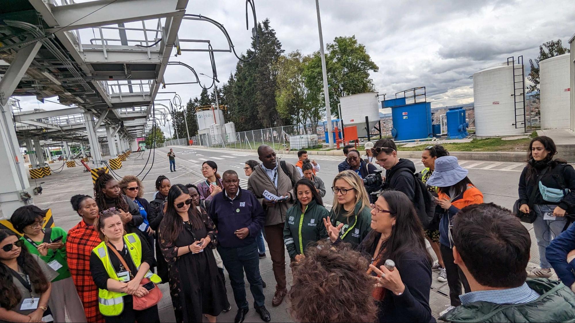 The Learning Lab concluded with an immersive tour of some of the city’s most transformative mobility interventions that address issues of emissions, equity, and sprawl by promoting bus electrification, optimized transit services, and support for low-income and vulnerable populations. Participants had the opportunity to see and ride the recently launched publicly-owned La Rolita buses, which are a feeder system to the broader Transmilenio network. La Rolita is particularly notable for its strategies to highlight gender equity, diversify its workforce, and advance environmental sustainability in urban transit. The company currently operates 195 electric buses that benefit more than 35,000 users across more than 20 neighborhoods, while also educating and training hundreds of women to become bus operators and company leaders.